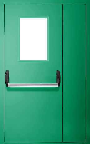 Полуторапольная противопожарная дверь «Антипаника» со стеклом EI 60 (RAL 6024)
